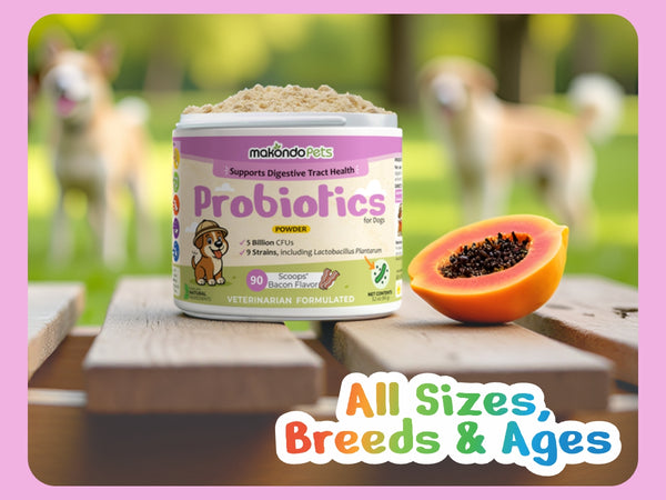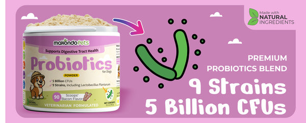 9 STRAIN PROBIOTICS FOR DOGS: The powers of 9 species come together to deliver a probiotics powder that soothes a dog's upset stomach to treat diarrhea, loose stool, bloating, excessive gas, bad breath, constipation & other digestive issues.