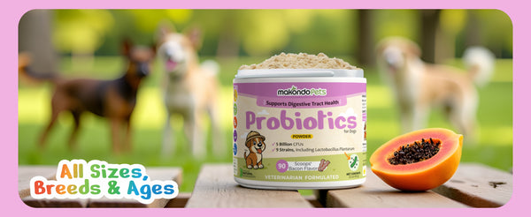 NO SUGARS, BYPRODUCTS, FILLERS: Unlike other digestive vitamins for dogs, this beef & chicken flavored digestive powder by Makondo Pets contains absolutely NO toxic ingredients, sugars, soy, wheat, byproducts, fillers or additives.