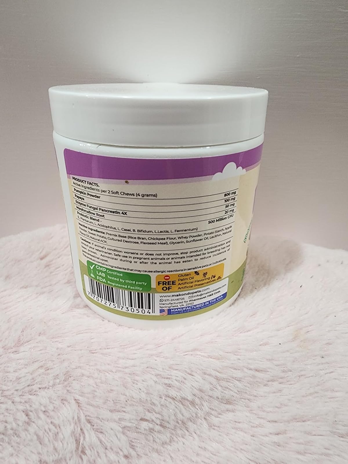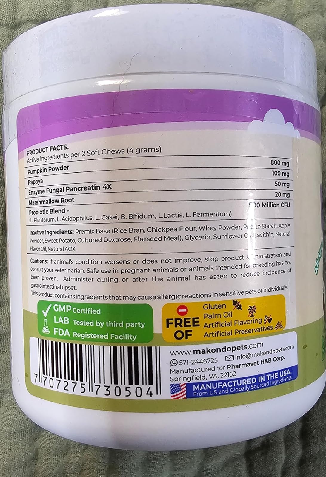 PREMIUM BLEND BITES- 6 Probiotics Strains, Pancreatin 4X Digestive Enzymes, Papaya, Pumpkin & more. Natural human grade chicken flavor treats for a healthy life. No hassle with pills, powder or tabs.